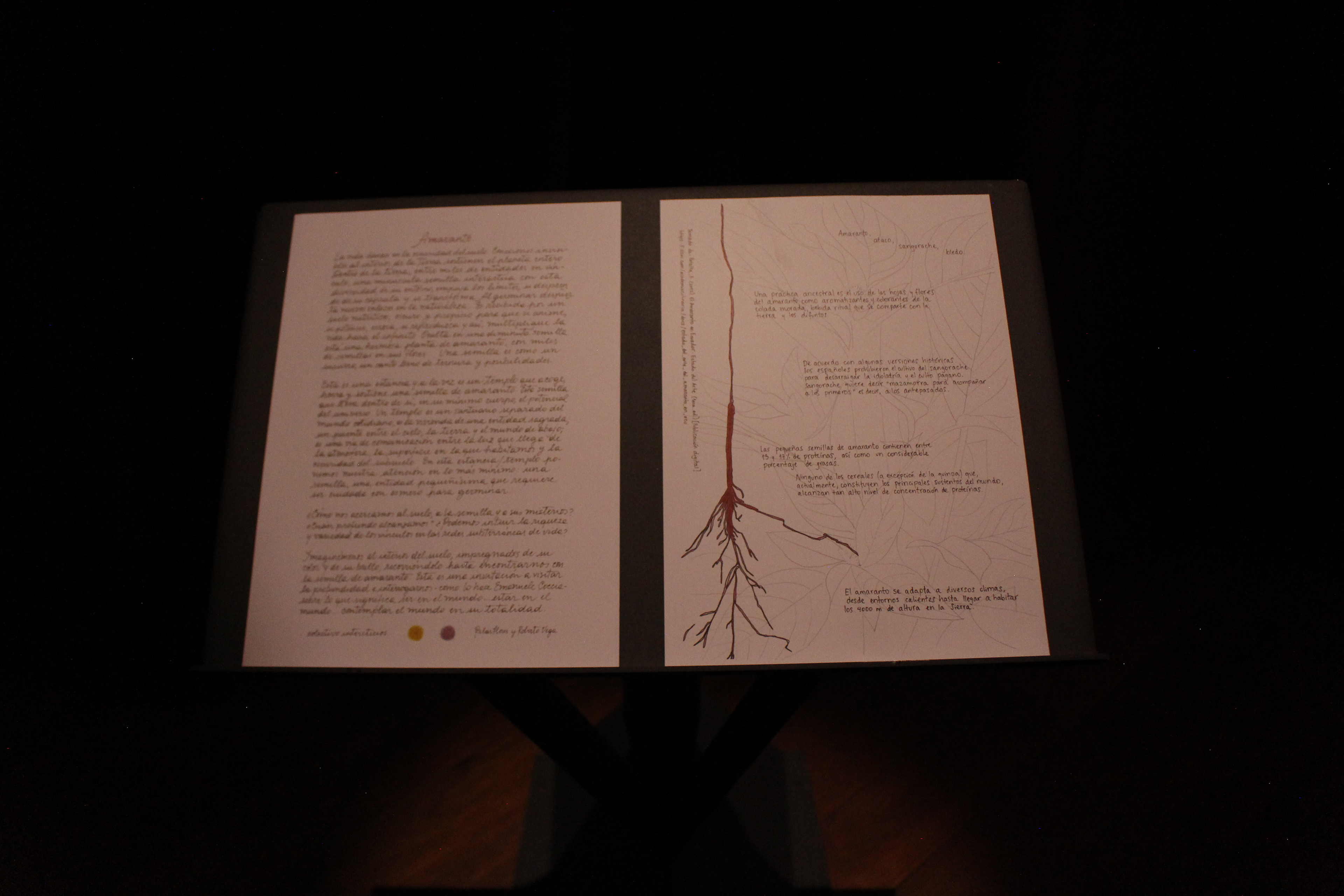 Amaranto, instalación del colectivo intersticios (Pilar Flores y Roberto Vega) fue parte de la exhibición PLANTAS DE PODER, curada por María Fernanda Cartagena. Centro Cultural Metropolitano Quito octubre 2023-enero 2024