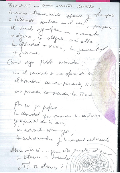 A lo largo de mi trayectoria artística he recogido reflexiones y escritos en Bitácoras de artista. En estos diarios constan procesos, referentes, pensamientos, imágenes y mapas mentales que van construyendo mi obra. Constan en ellas tres décadas de búsquedas, de experimentaciones, de deliberaciones, y de estudios con referentes filosóficos.