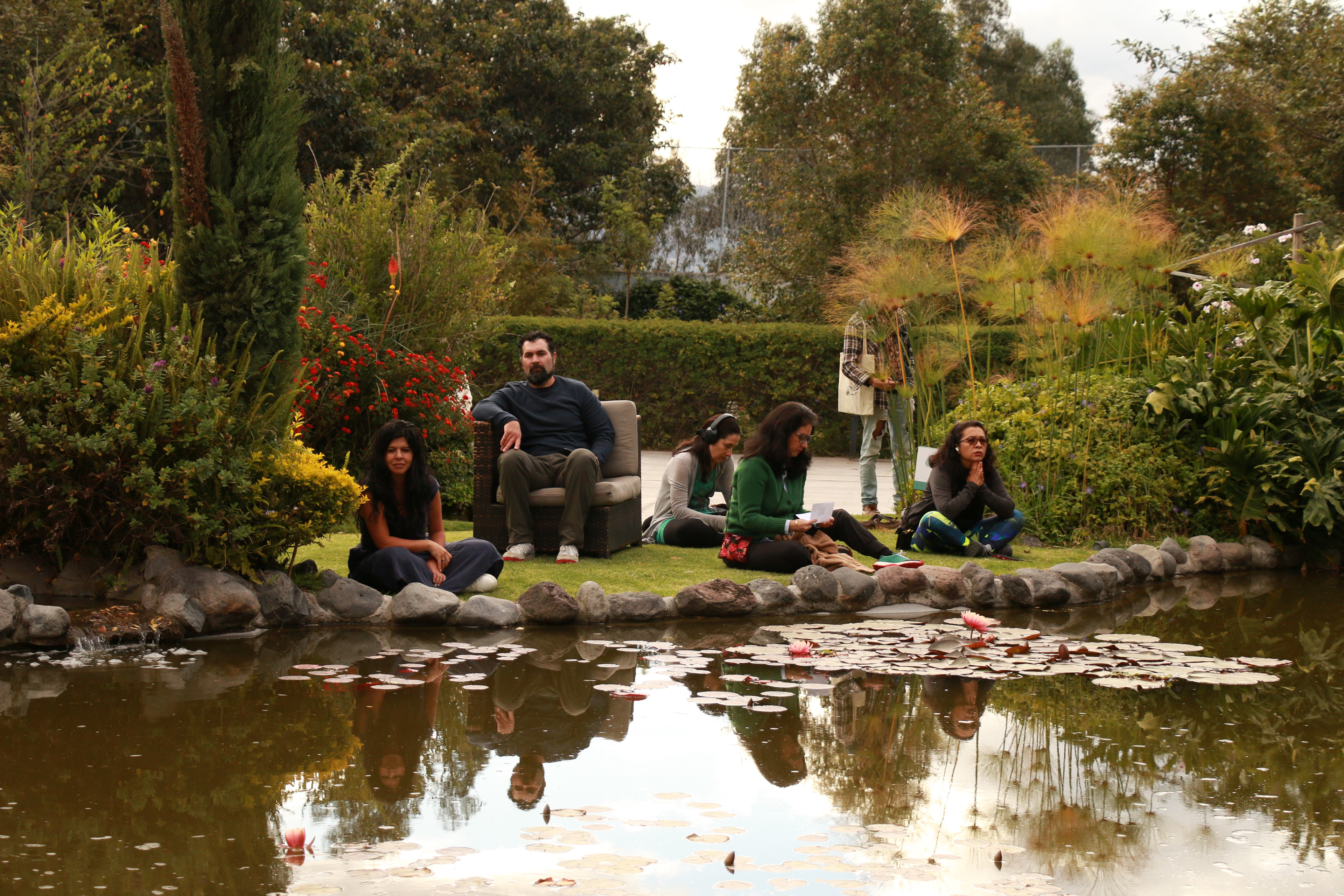 [1] La campana restablece la atención. Al escucharla, la mente se enfoca nuevamente. Una persona del colectivo se encargará de dar la señal del tiempo. La duración de cada instrucción puede variar de acuerdo al jardín que se visite.